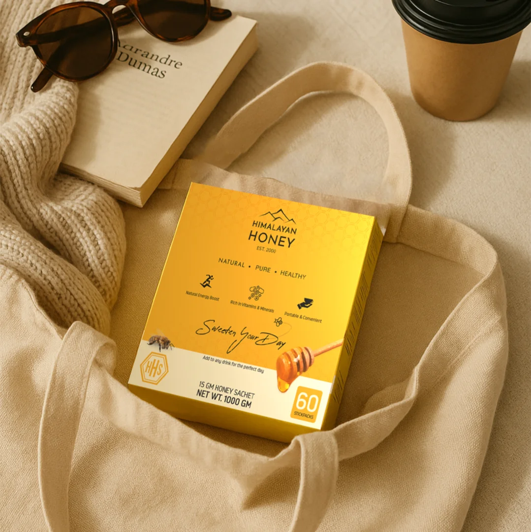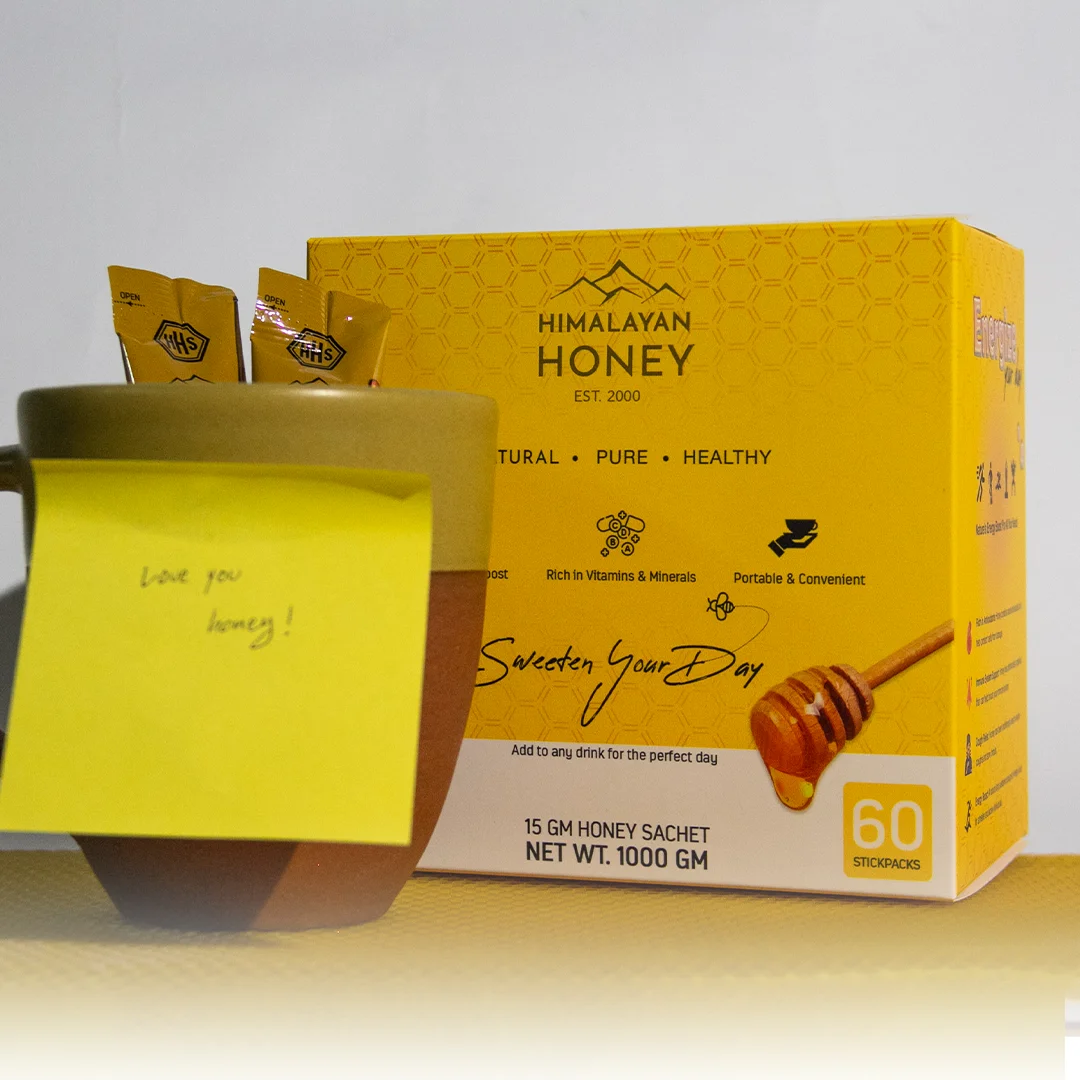 Experience the richness of 100% raw Himalayan honey — now in convenient, single-serve sachets. Sourced from high-altitude forests and crafted with care, our sachets are perfect for your daily dose of natural energy, wherever you go.